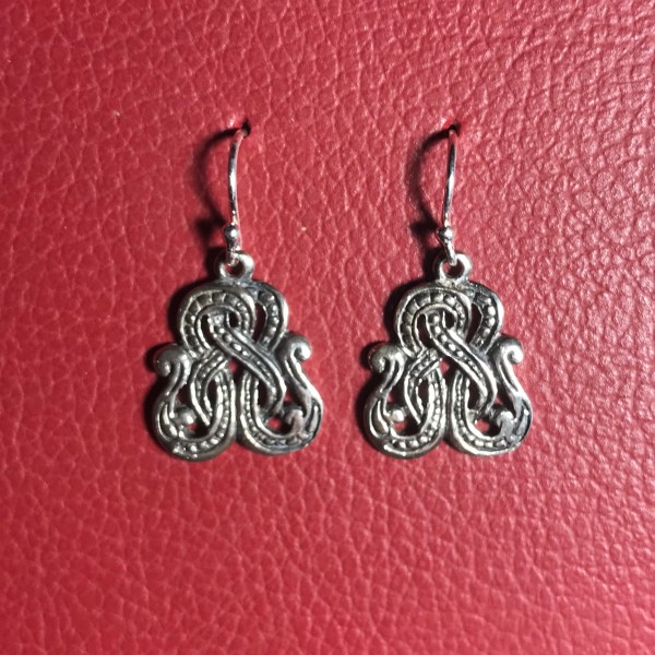 Bei diesem komplex geformten Drachen-Ohrhänger wird das Auge ziemlich ausgetrickst: Fast alle Leute sehen in dem geknoteten Drachen zwei Tiere, aber beim genauen Hinschauen ist nur einer mit zwei Köpfen zu erkennen! Sein langer Körper windet sich so gekonnt in eleganten Schwüngen, dass es wirkt, als würde er sich - oder als würden die beiden sich - windend-schlängelnd bewegen.